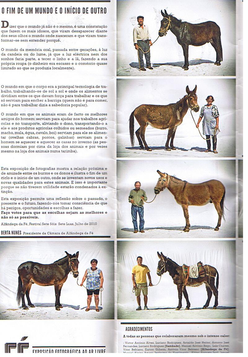 De 17 de Julho a 21 de Agosto, decorreu no jardim municipal de Alfândega da Fé uma exposição fotográfica ao ar livre “Fé nos burros”, que de imediato me transportou a um livro belíssimo “Platero e eu”
