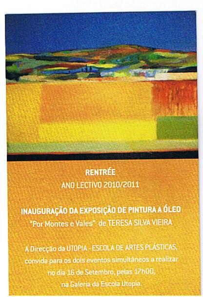 Trata-se de uma exposição de Teresa Silva Vieira, responsável pela referida escola e de quem já em tempos coloquei imagens de outros trabalhos. Se a obra da Teresa é, para mim, sempre muito interssante, esta exposição, que me parece um novo caminho no percurso artístico de Teresa Silva Vieira. superou todas as minhas expecxtativas. Parabéns Teresa.