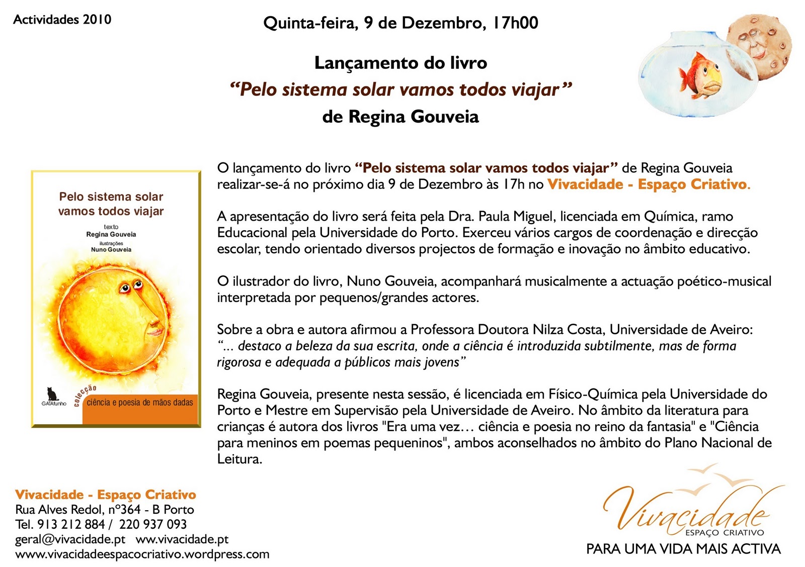 O Clube Literário do Porto (Rua Nova da Alfândega, n.º 22) convida para o lançamento do livro "Pelo sistema solar vamos todos viajar" da autoria de Regina Gouveia, ilustrado por Nuno Gouveia.
