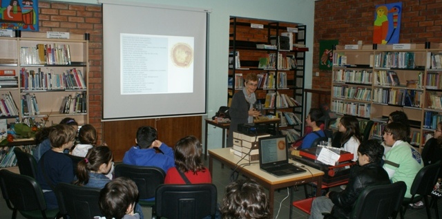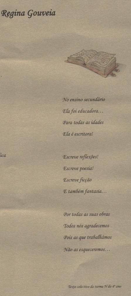 Mas voltemos às visitas. Tenho ainda poucos documentos. Ficaram de me enviar fotos mas ainda as não tenho. Deixo, no entanto, um filme com uma entrevista para uma estação local de televisão, dois trabalhos colectivos que me foram entregues por alunos, e um livro editado pela Câmara Municipal, um conto colectivo escrito e ilustrado por alunos, sob a orientação de professores e que, gentilmente, me foi oferecido pela Coordenadora da Biblioteca.