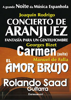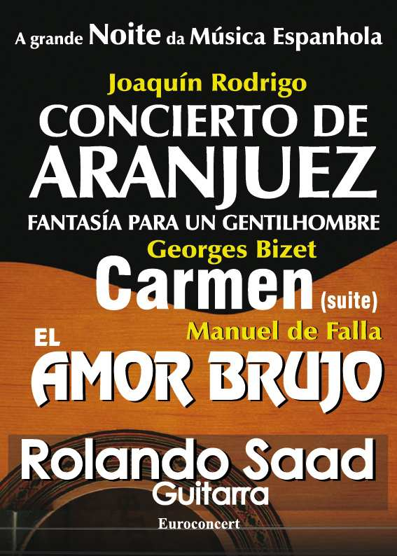 Uma noite com os sons da Orquestra Sinfónica Estatal Ucraniana e o som da guitarra de Rolando Saad cujas sonoridades nos lembram a magia da música de Joaquin Rodrigo e o encantamento bruxo de Manuel de Falla. A obra do "Concerto de Aranjuez", de Joaquín Rodrigo, é uma fusão criativa de música de influências populares com uma imaginativa orquestração.