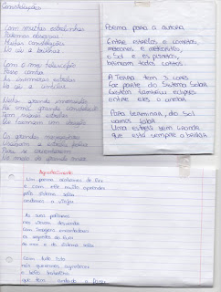 Logo de início os alunos fizeram uma leitura representada do poema Era uma vez a lua. Depois da minha intervenção, com experiências à mistura como é habitual, colocaram inúmeras questões. Leram também o poema que anexo