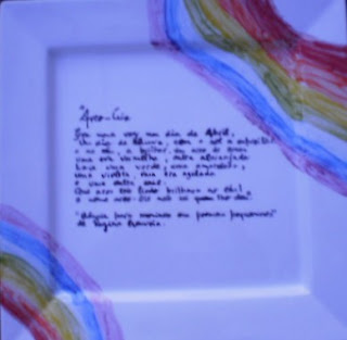 Na 3º feira de manhã fui a uma escola na Afurada, estar com meninos do 2º ano (primeira sessão) e do 3ºano (segunda sessão). Os primeiros eram um pouco mais irrequietos talvez pela idade. Os segundos comportaram-se de uma forma excepcional Para mim foi uma surpresa pois não sabiam quem eu era nem tinham trabalhado nenhum livro meu. Projetei uns poemas com as respectivas ilustrações e fui fazendo algumas experiências (por exemplo, a propósito do poema arco-íris, projetei uma grande arco-íris no teto, usando um retroprojetor e um copo de água). Os miúdos acompanhavam tudo com enorme atenção. Quando acabei de projetar os poemas que tinha selecionado perguntaram-me se o livro não tinha mais poemas. Então quiseram que eu lesse mais um e mais outro e mais outro … Estava na hora de irem almoçar mas não se dispunham a abandonar a sala de aula. Foi fantástico…