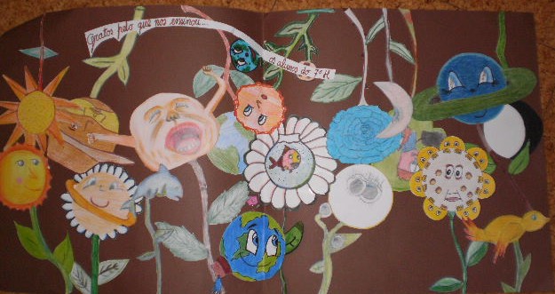 As sessões correram muito bem. Na primeira sessão estava prevista uma intervenção a propósito de um dos textos do livro mas, por razões de saúde, a professora não pôde trabalhar essa intervenção com os alunos. Mesmo assim, no final da sessão, um grupo fez questão de me brindar com uma apresentação. Mas ao longo da manhã fui surpreendida ainda por outras intervenções: trabalhos feitos em articulação com EVT,
