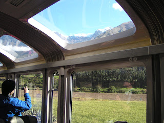Foi no penúltimo dia em terras peruanas que visitámos Machu Pichu. Deslocámo-nos de comboio através do vale sagrado, até à povoação de Águas Calientes. O Comboio panorâmico(de teto envidraçado), destinado apenas a turistas percorre cerca de 100km em quase 4 h.