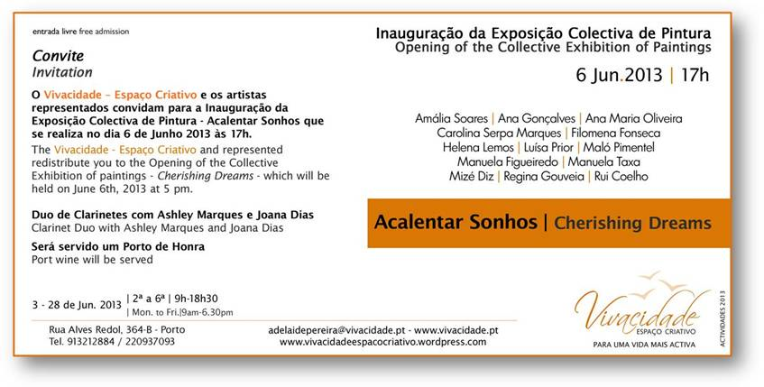 Deixo também o convite para a exposição, a inaugurar no próximo dia 6 e que incluirá dois trabalhos meus.