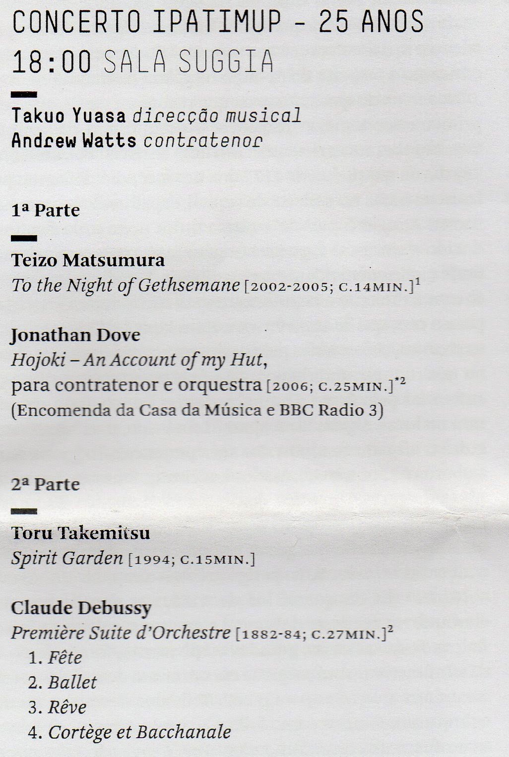 que constam no programa (de Matsumura, de Takemitsu, de Debussy , mas não de Jonathan