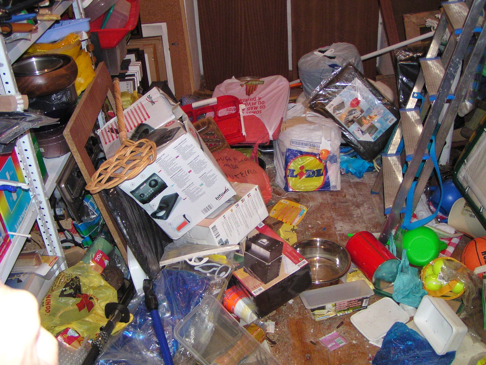 no interior) para continuar a tarefa ciclópica de organizar e eliminar “tralhas”