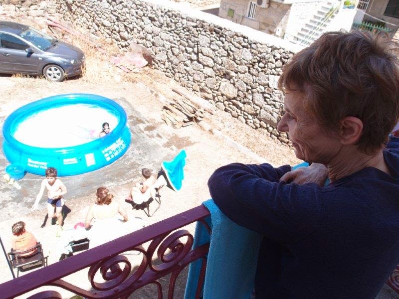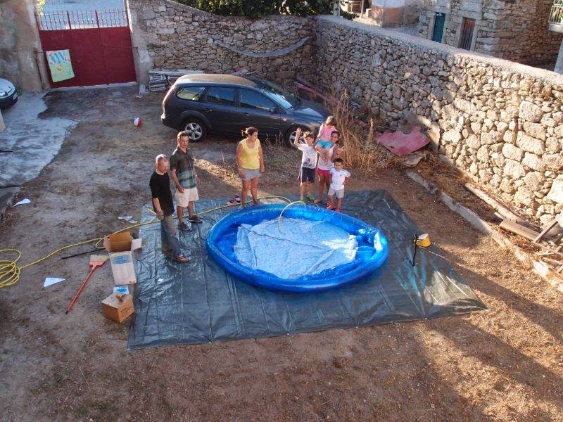 No dia 2 chegaram filhos netos, quadros e uma piscina insuflável. Na Adeganha não há lagar de vinho transformado em piscina, mas há um grande pátio onde a mesma foi instalada