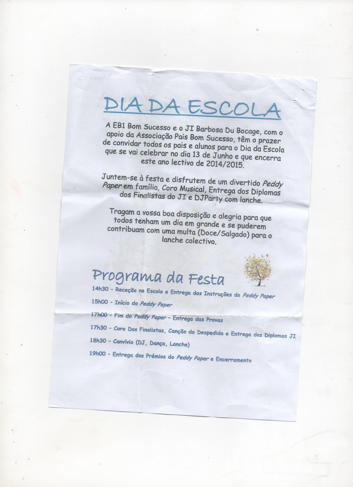 No dia 13, o Infantário Barbosa du Bocage, que a minha neta mais nova frequentea e a escola do Bom Sucesso, levaram a cabo a festa de encerramento do ano letivo, com um peddy paper.