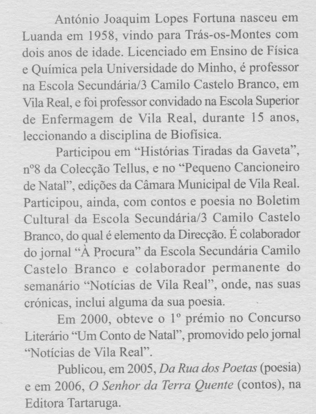 Conheci António Fortuna  há vários anos. Professor de Física e Química em Vila Real, trabalhámos juntos em vários projetos de investigação na área da Didática das Ciências, coordenados pela Prof Dra Nilza Costa, da Universidade de Aveiro. Para além de docente, dedica-se à escrita,  tendo vários livros publicados. No passado dia 12, quando do encontro em Vila Real, manifestou interesse em assistir à apresentação a que esta mensagem se refere, Convidei-o então para ser o apresentador do referido livro,  convite a que generosamente acedeu de imediato.